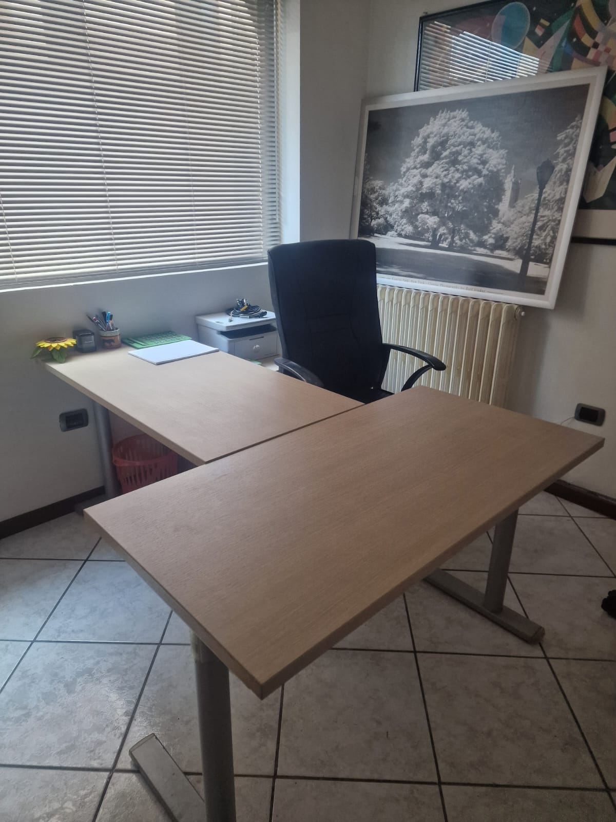 Due scrivanie da ufficio, ripiano in legno gambe in alluminio, in buone condizioni colore nocciola